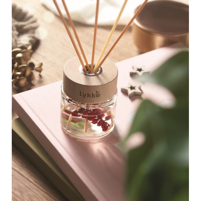 Vonný difuzérem ve skleněné dóze s květinovou dekorací. 6 rákosových tyčinek. Vanilková vůně. Objem 100 ml.Rozměry: 7,1 x 7,1 x 23cm
