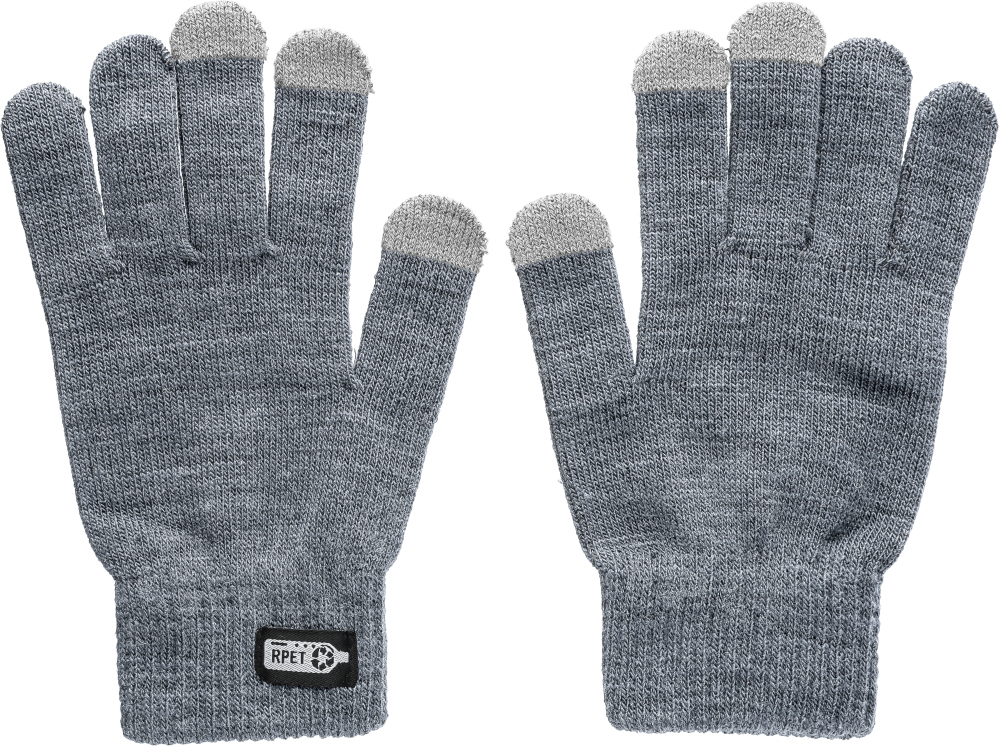 Dotykové rukavice s vodivým povlakem na třech prstech pro použití na obrazovce. Obsahuje štítek rPET na vnější straně a štítek na praní s informacemi na vnitřní straně. Rozměry: 21 x 15 cm