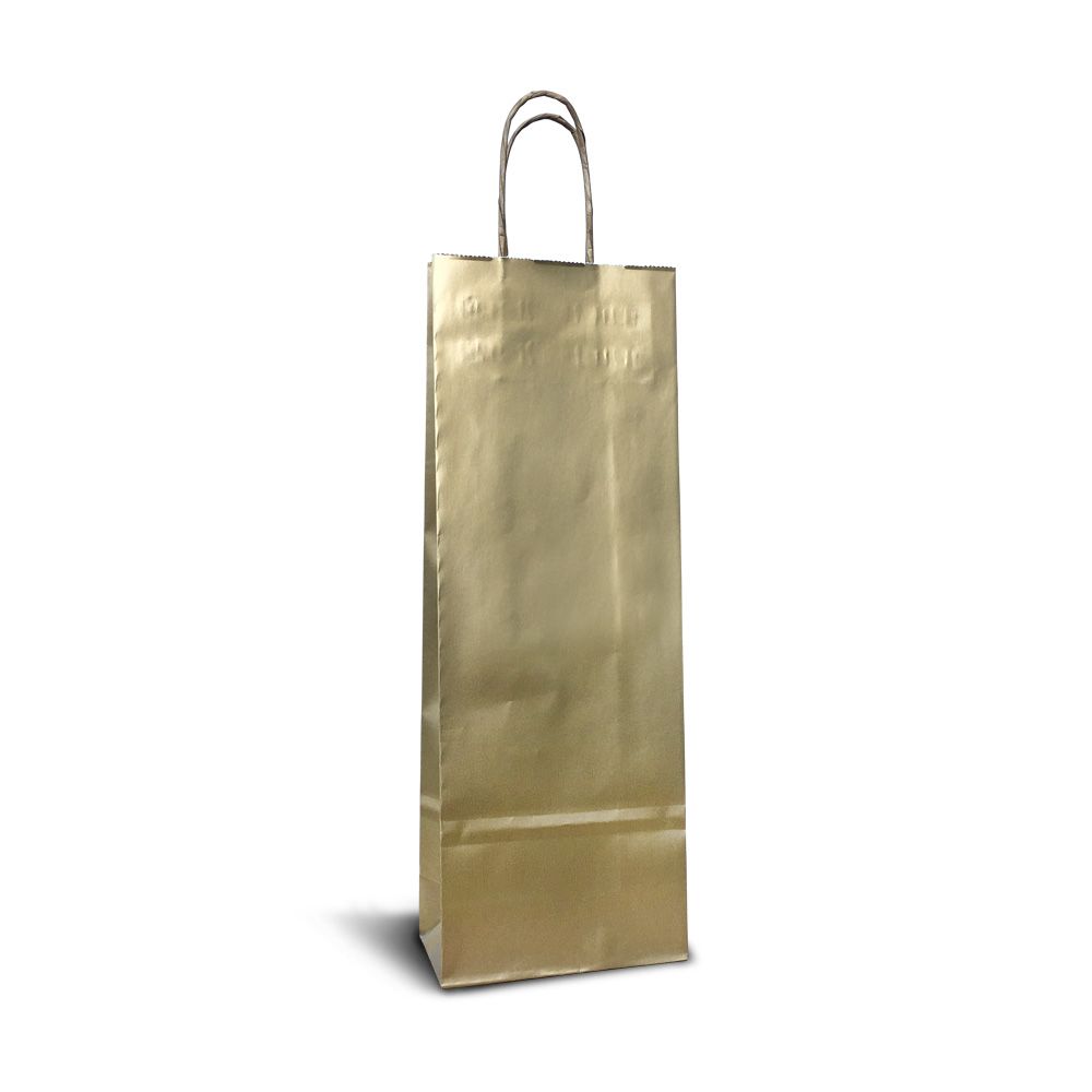DUNEO Papírová taška na víno 14 x 8 x 40 cm, zlatá