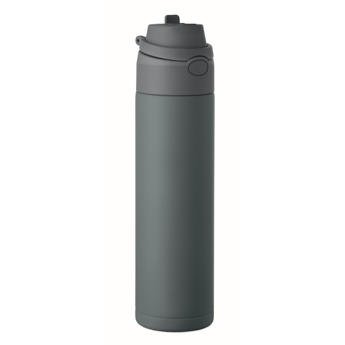 Dvojstěnná láhev z recyklované nerezové oceli (90 % recyklované nerezové oceli a 10 % nerezové oceli). S víčkem z PP 2v1 a rukojetí. Objem: 500 ml. Rozměry: O7.4 x 26.6 cm