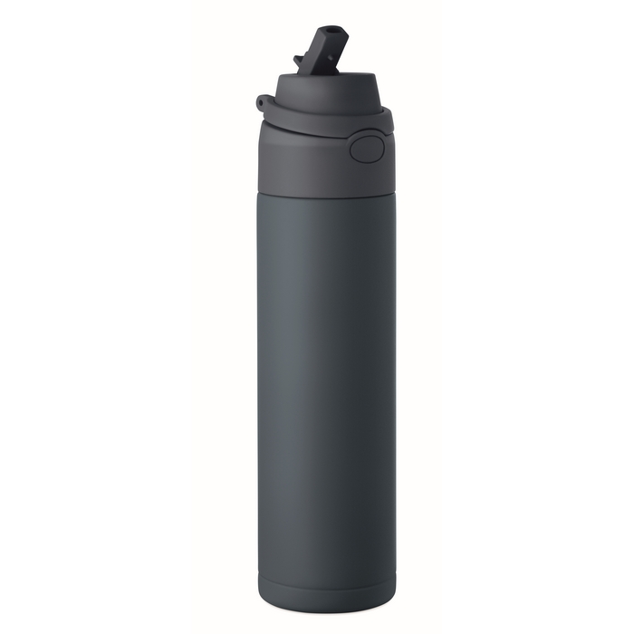 Dvojstěnná láhev z recyklované nerezové oceli (90 % recyklované nerezové oceli a 10 % nerezové oceli). S víčkem z PP 2v1 a rukojetí. Objem: 500 ml. Rozměry: O7.4 x 26.6 cm
