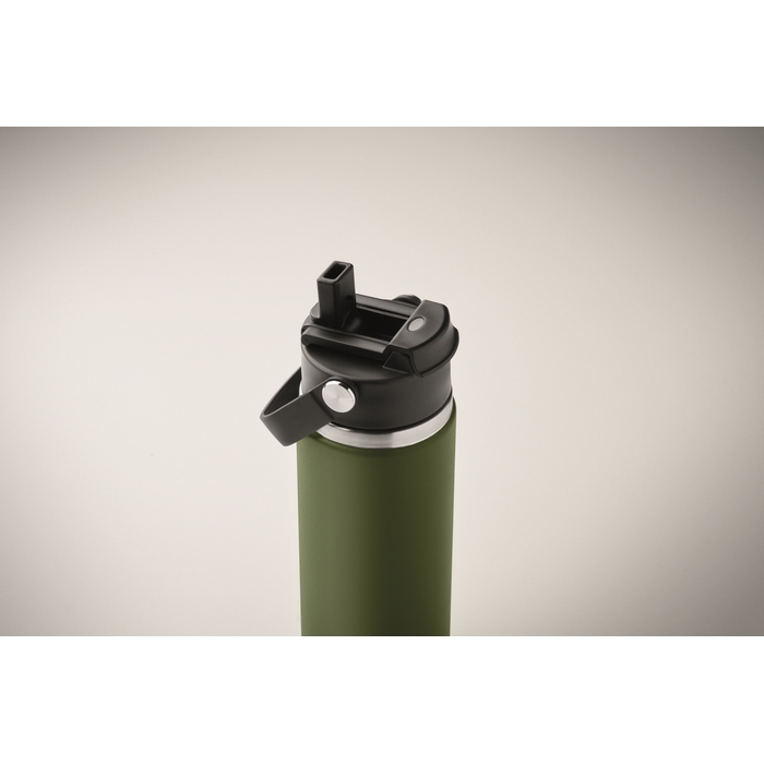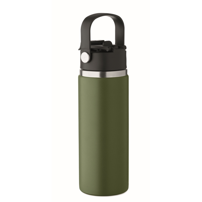 Dvoustěnná termoláhev z recyklované nerezové oceli (90 % recyklované nerezové oceli a 10 % nerezové oceli) s kombinovaným víčkem, brčkem a rukojetí. Neteče. Objem: 500 ml. Rozměry: O7.4 x 22 cm