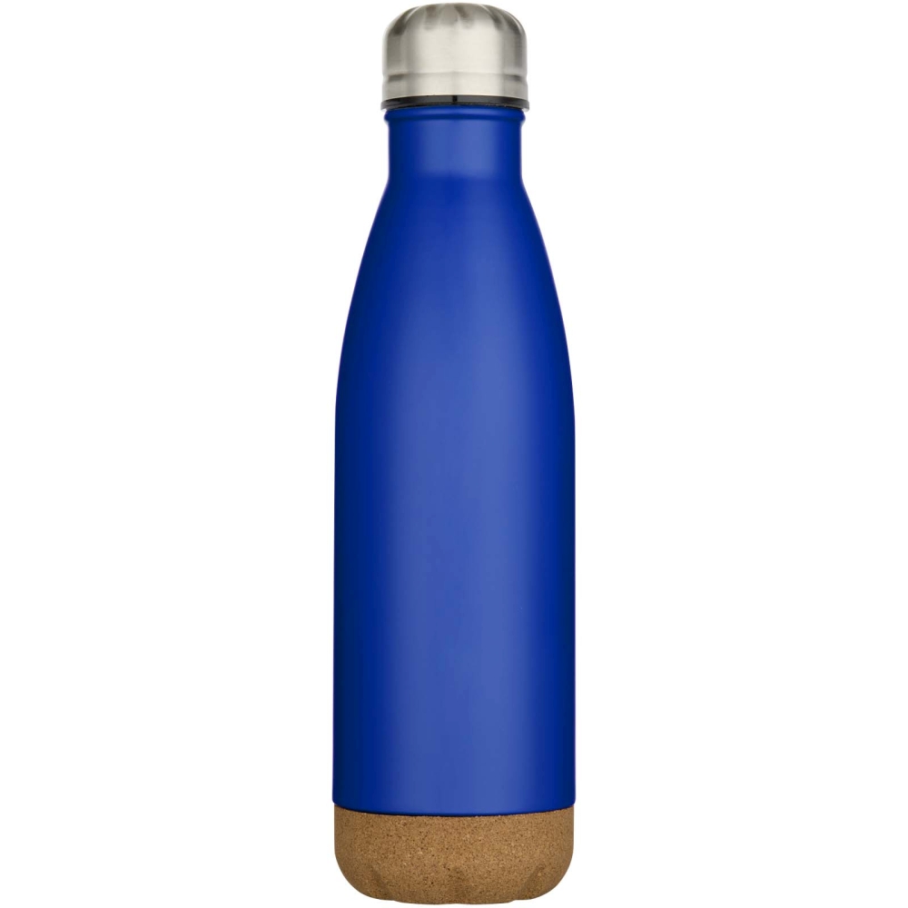 Dvoustěnná vakuově izolovaná nerezová láhev na vodu s korkovými detaily 500ml , královská modrá