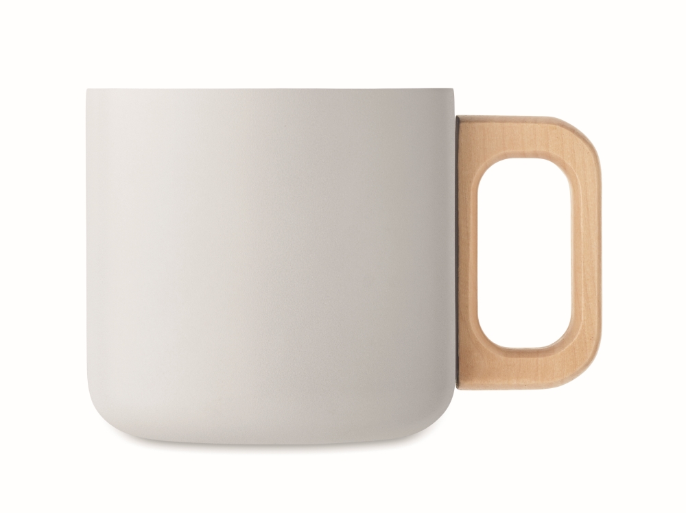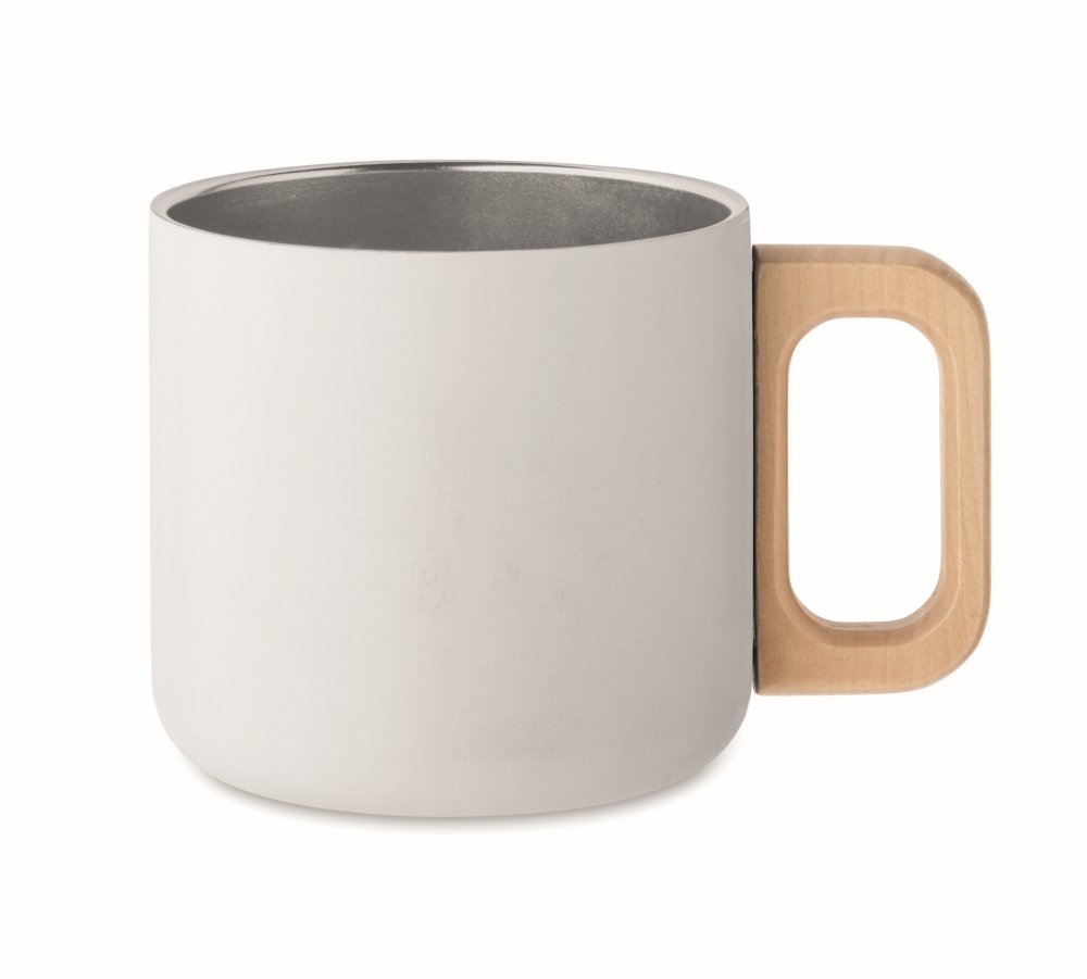 Dvoustěnný hrnek z recyklované nerezové oceli (90 % recyklované nerezové oceli a 10 % nerezové oceli) s dřevěným uchem. Objem: 350 ml. Rozměry: O 8,5 x 8 cm. Materiál: nerezová ocel