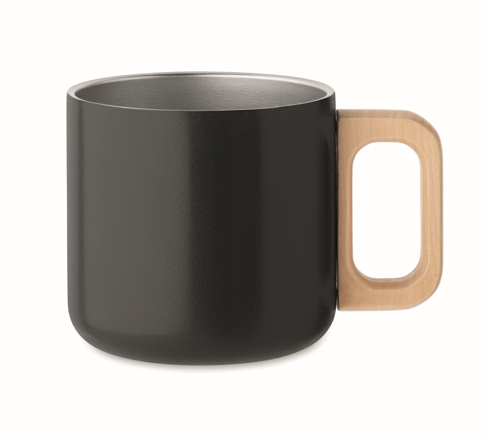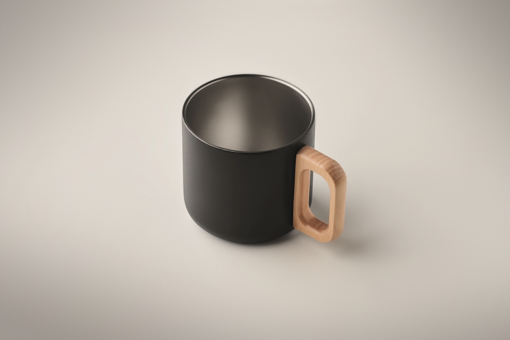 Dvoustěnný hrnek z recyklované nerezové oceli (90 % recyklované nerezové oceli a 10 % nerezové oceli) s dřevěným uchem. Objem: 350 ml. Rozměry: O 8,5 x 8 cm. Materiál: nerezová ocel