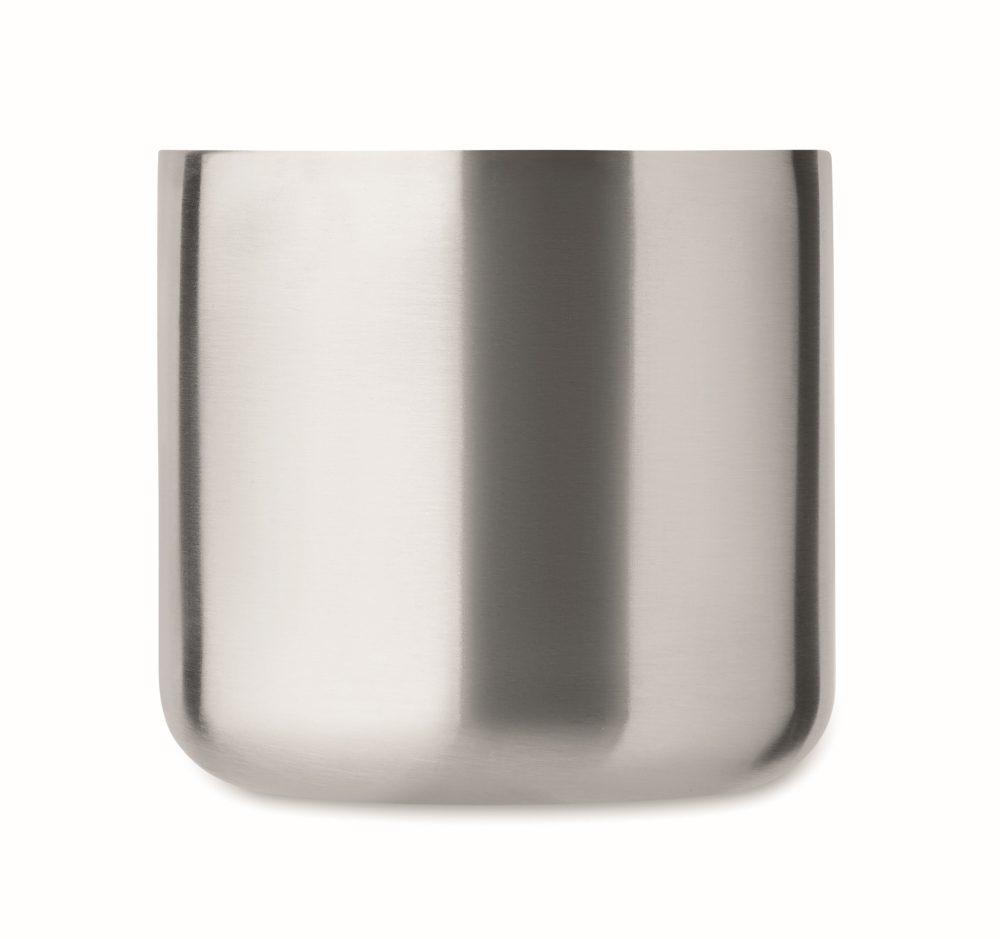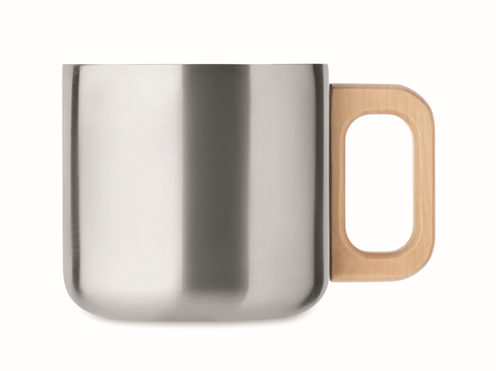 Dvoustěnný hrnek z recyklované nerezové oceli (90 % recyklované nerezové oceli a 10 % nerezové oceli) s dřevěným uchem. Objem: 350 ml. Rozměry: O 8,5 x 8 cm. Materiál: nerezová ocel