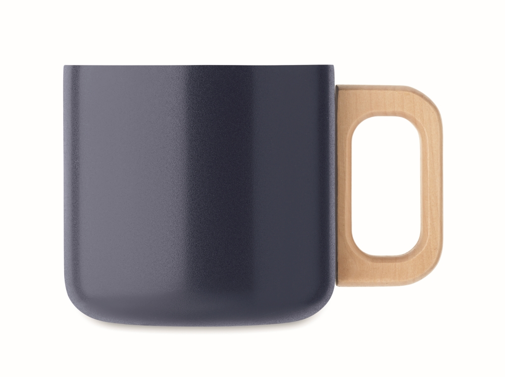 Dvoustěnný hrnek z recyklované nerezové oceli (90 % recyklované nerezové oceli a 10 % nerezové oceli) s dřevěným uchem. Objem: 350 ml. Rozměry: O 8,5 x 8 cm. Materiál: nerezová ocel