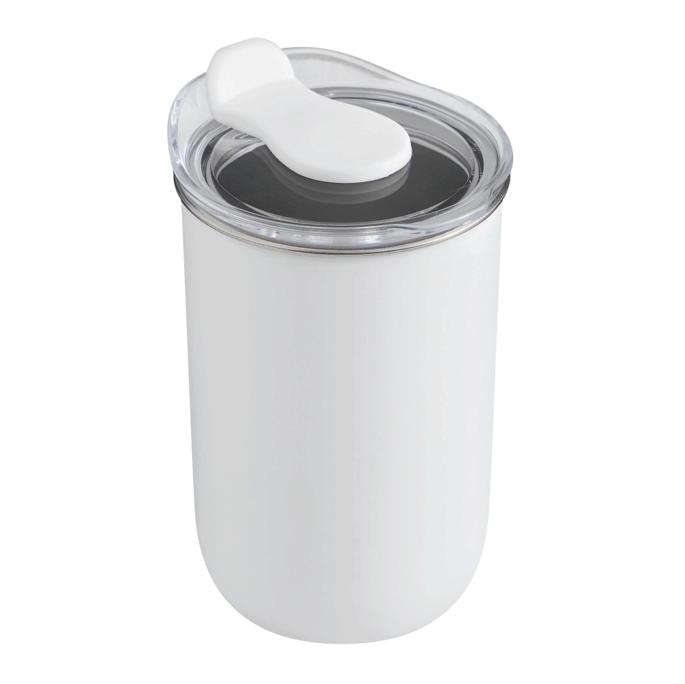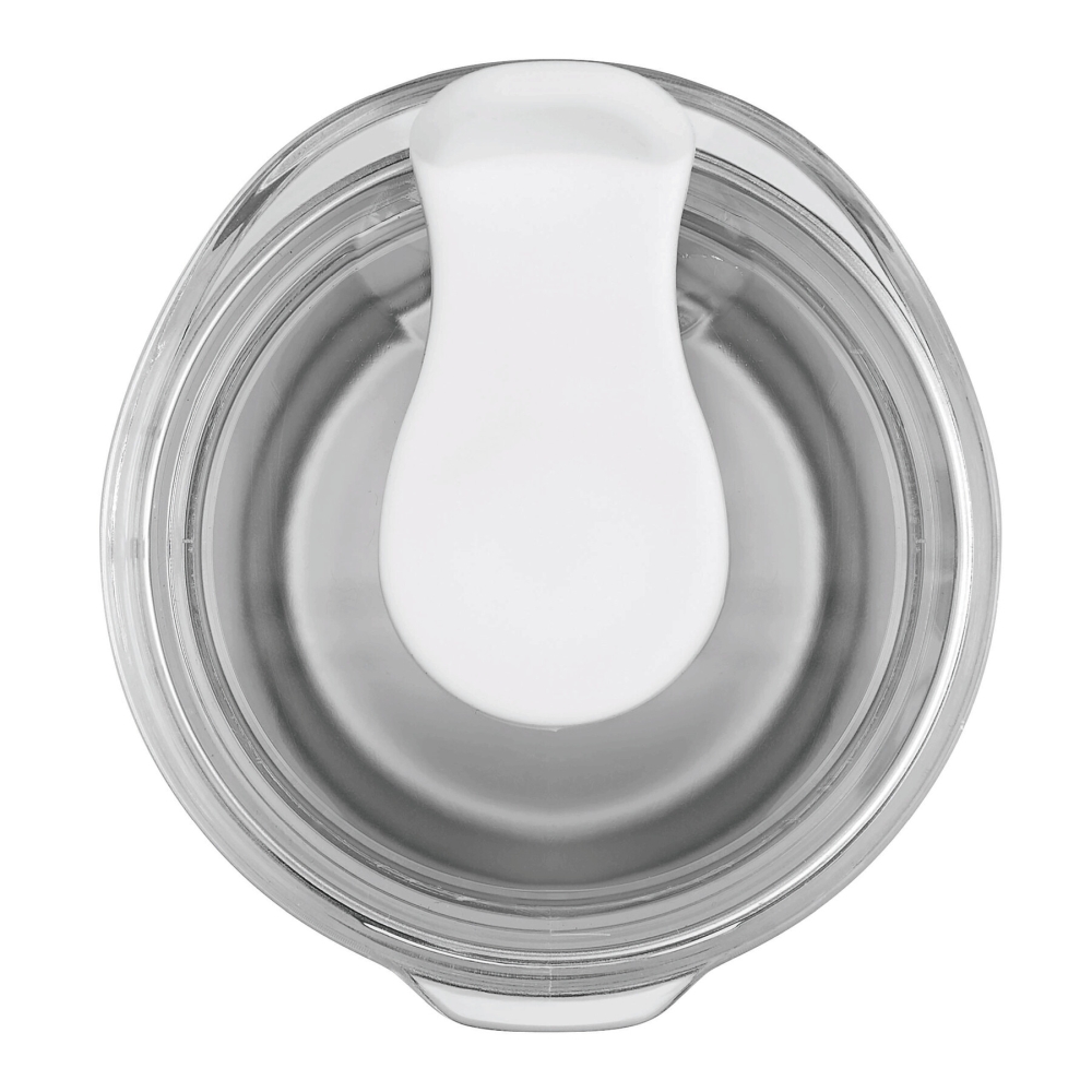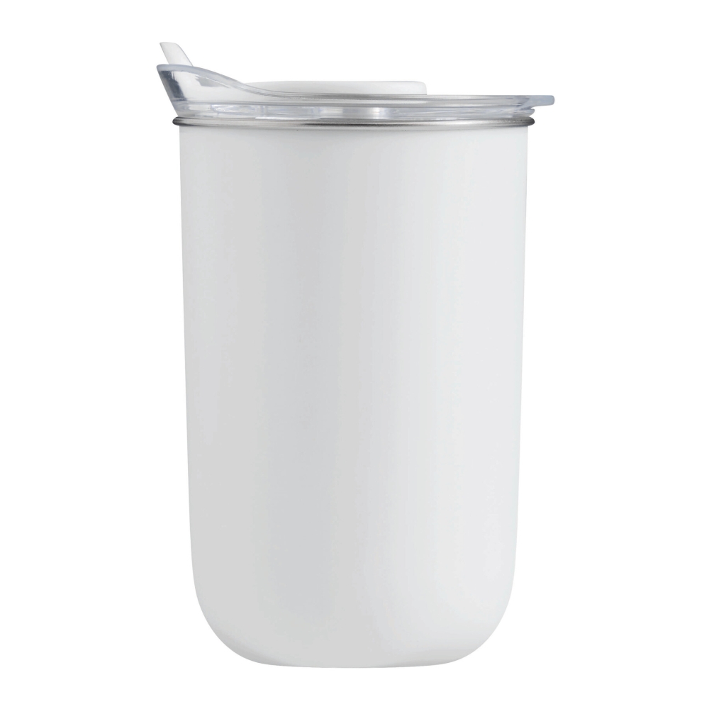 Dvoustěnný termohrnek, vnitřek z nerezové oceli, vnější strana z plastu, plastové víčko se silikonovým těsněním a integrovaným otvorem pro pití (se silikonovým krytem), objem cca 350 ml, udrží nápoj teplý cca 2 hodiny a studený až 4 hodiny, baleno v krabičce. Rozměry: O7,7 x 13 cm