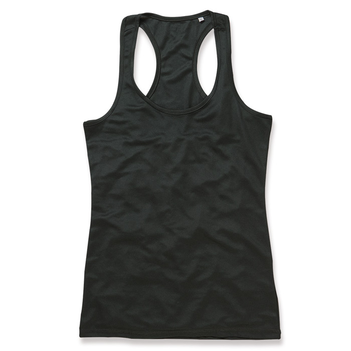 Dámské sportovní tílko bez rukávů, boční švy, projmutá ramínka na zádech, elastický materiál. Materiál: 100% Active-Dry polyester interlock, 140 gsm. Doporučená technologie tisku: sítotisk S3, S4, výšivka.
