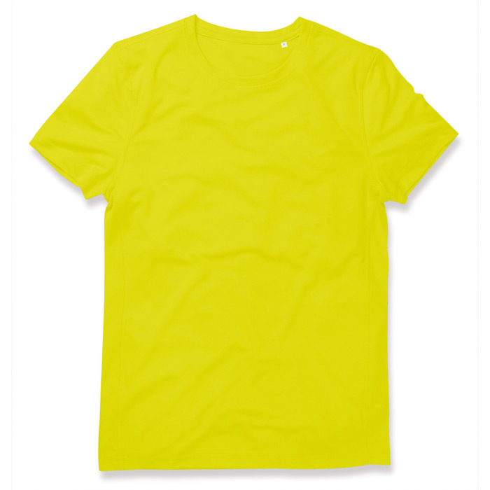 Pánské sportovní tričko s dekorativními plochými švy, kontrastní páska v barvě reflexní žlutá na vnitřní straně výstřihu. Materiál: 100% Active-Dry polyester síťovina, 140 gsm. Doporučená technologie tisku: sítotisk S3, S4, výšivka.
