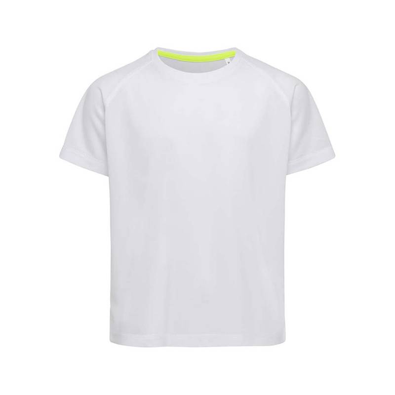 Dětské sportovní tričko s dekorativními plochými švy, kontrastní páska v barvě reflexní žlutá na vnitřní straně výstřihu. Materiál: 100% Active-Dry polyester síťovina, 140 gsm. Doporučená technologie tisku: sítotisk S3, S4, výšivka.