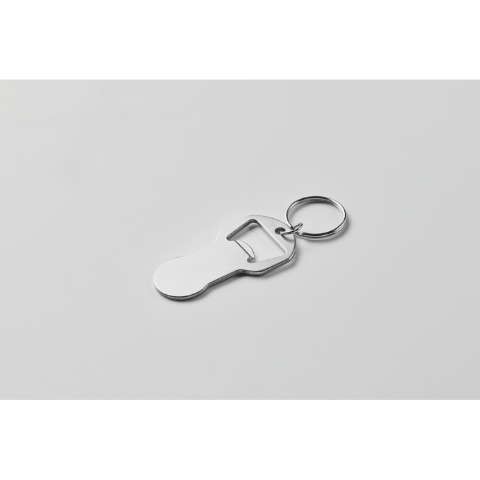 Hliníková klíčenka s otvírákem, stříbrná