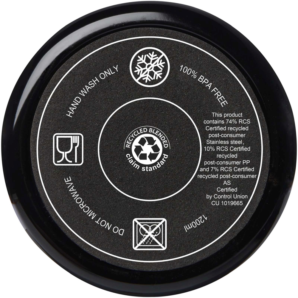 Hrnek se vyznačuje odolnou konstrukcí s dvojitou stěnou, která udržuje nápoje horké nebo studené v jakémkoli prostředí. Vnitřní stěna hrnku je vyrobena z recyklovaného plastu, vnější stěna z recyklované nerezové oceli. Hrnek o objemu 1200 ml nabízí stylový způsob, jak zůstat hydratovaný po celý den. Má přítlačné víčko odolné proti vyšplíchnutí se dvěma otvory a otočným uzávěrem. Dodává se s recyklovaným brčkem potravinářské kvality. Nedoporučujeme mýt v myčce. Rozměry: 13,8 x 26,1 x 10 x O 10 cm