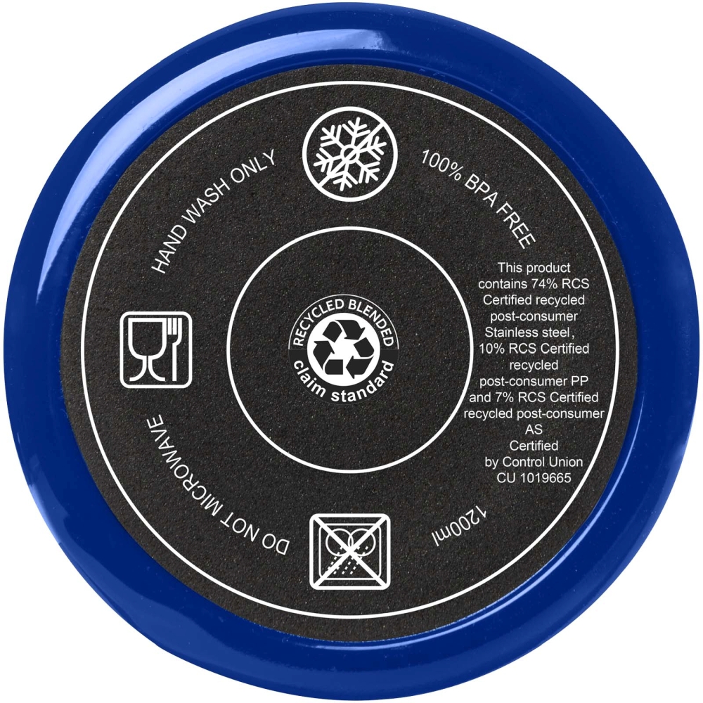 Hrnek se vyznačuje odolnou konstrukcí s dvojitou stěnou, která udržuje nápoje horké nebo studené v jakémkoli prostředí. Vnitřní stěna hrnku je vyrobena z recyklovaného plastu, vnější stěna z recyklované nerezové oceli. Hrnek o objemu 1200 ml nabízí stylový způsob, jak zůstat hydratovaný po celý den. Má přítlačné víčko odolné proti vyšplíchnutí se dvěma otvory a otočným uzávěrem. Dodává se s recyklovaným brčkem potravinářské kvality. Nedoporučujeme mýt v myčce. Rozměry: 13,8 x 26,1 x 10 x O 10 cm