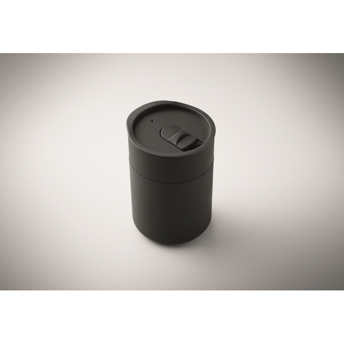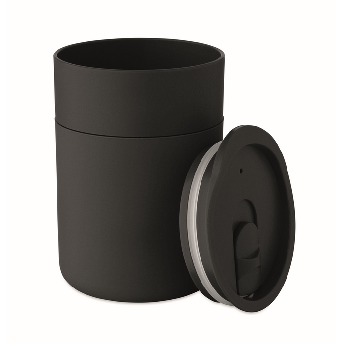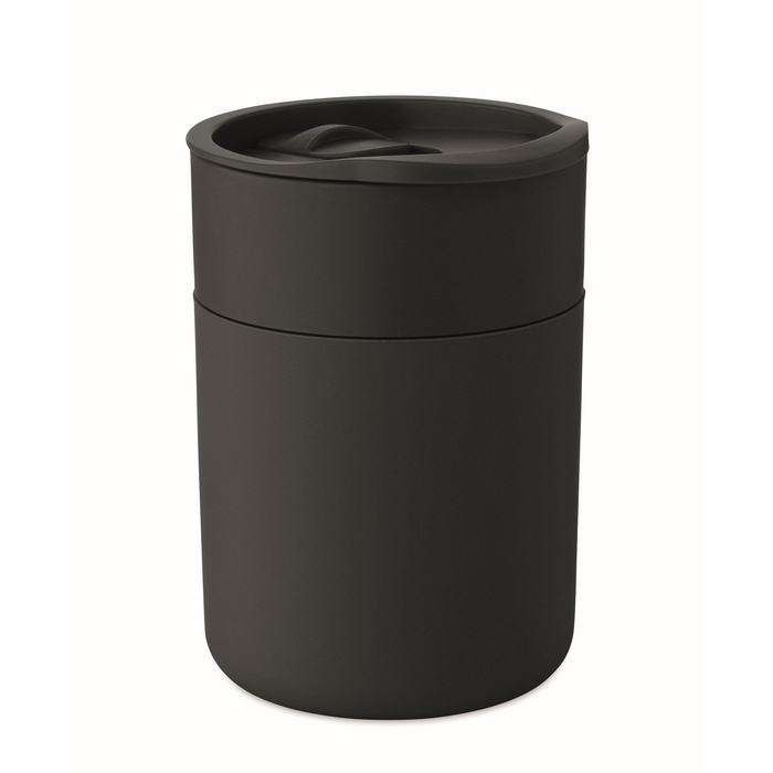 Hrnek z PP se silikonovým návlekem a posuvným víčkem. Objem: 330ml. Protože se jedná o hrnek s jednou stěnou, může docházet k přenosu tepla. Rozměry: 8.4 x 7.9 x 11.3 cm