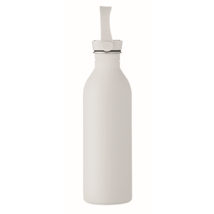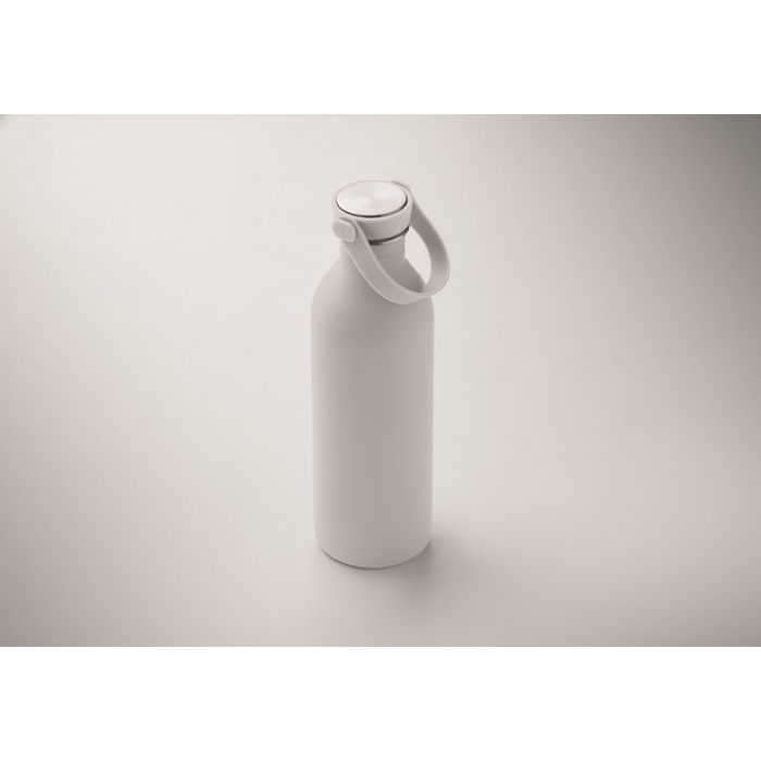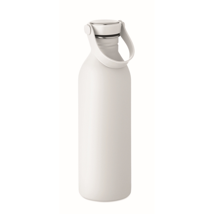Jednostěnná láhev vyrobená z 90 % z recyklované nerezové oceli a z 10 % z nerezové oceli s pogumovaným povrchem. Víčko z PP a silikonové poutko. Objem: 500 ml. Může přenášet teplo, díky jedné stěně. Rozměry: O6.1 x 21.3 cm