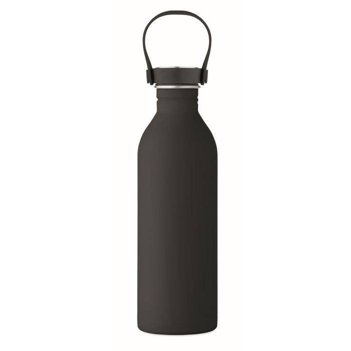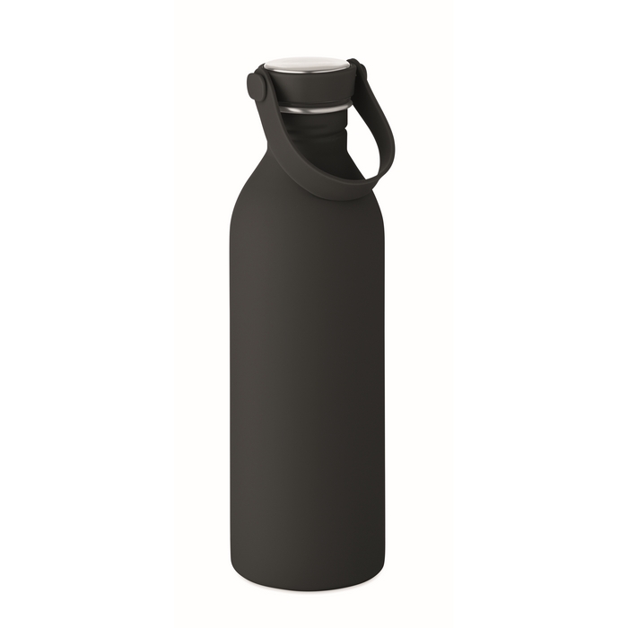 Jednostěnná láhev vyrobená z 90 % z recyklované nerezové oceli a z 10 % z nerezové oceli s pogumovaným povrchem. Víčko z PP a silikonové poutko. Objem: 500 ml. Může přenášet teplo, díky jedné stěně. Rozměry: O6.1 x 21.3 cm