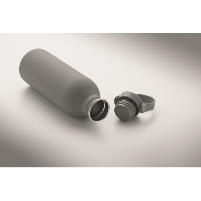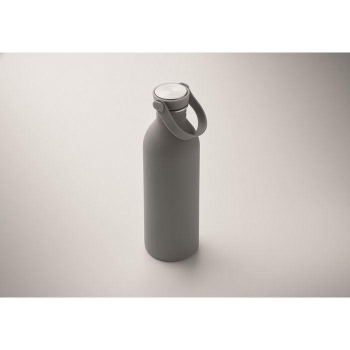 Jednostěnná láhev vyrobená z 90 % z recyklované nerezové oceli a z 10 % z nerezové oceli s pogumovaným povrchem. Víčko z PP a silikonové poutko. Objem: 500 ml. Může přenášet teplo, díky jedné stěně. Rozměry: O6.1 x 21.3 cm