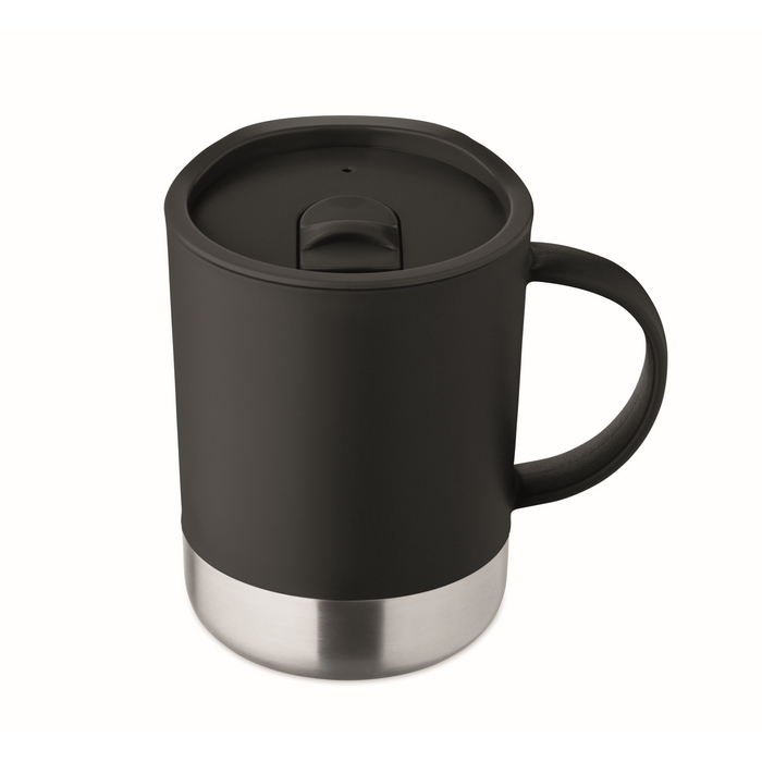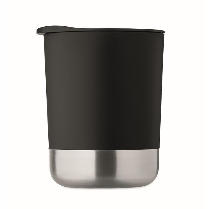 Jednostěnný hrnek z PP s nerezovým dnem (90 % recyklované nerezové oceli a 10 % nerezové oceli) a víčkem z PP. Objem: 300 ml. Rozměry: 11.2 x 10 cm