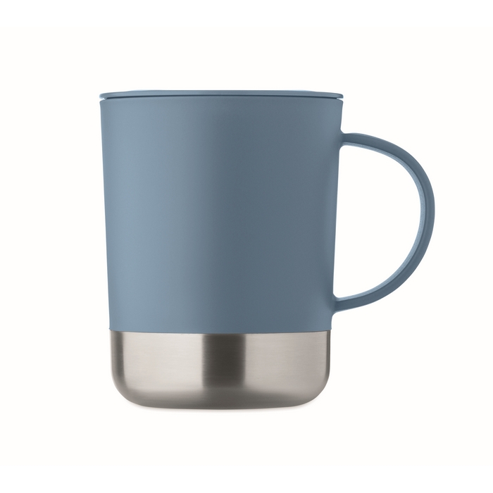 Jednostěnný hrnek z PP s nerezovým dnem (90 % recyklované nerezové oceli a 10 % nerezové oceli) a víčkem z PP. Objem: 300 ml. Rozměry: 11.2 x 10 cm