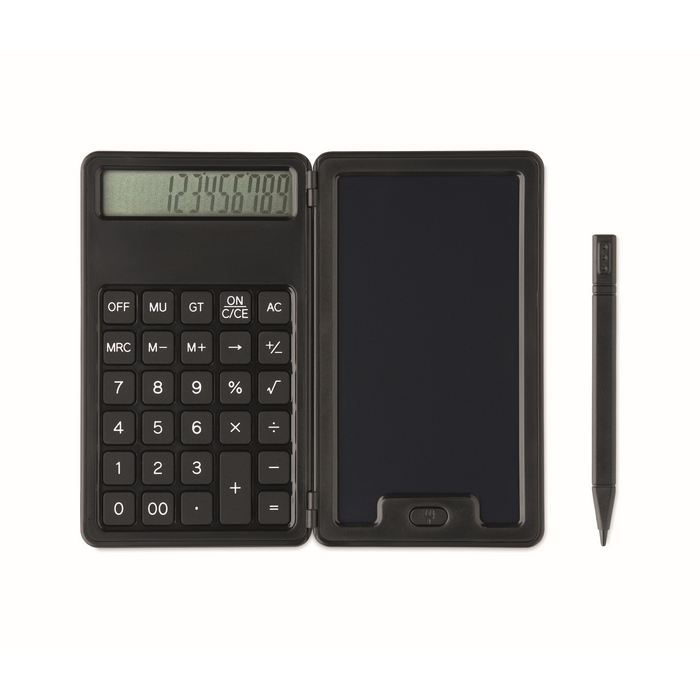 Kalkulačka s 5 LCD psacím tabletem. Včetně stylusu. Rozměry: 7.5 x 1.6 x 12.8 cm