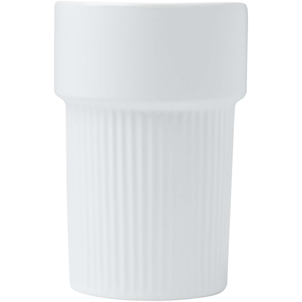 Stylový keramický kelímek je dodáván s odnímatelným bambusovým návlekem, který je ideální pro použití při pití horkých nápojů. Bambus pochází z udržitelných, ekologicky a sociálně odpovědných zdrojů. Objemová kapacita: 340 ml. Dodává se v dárkové krabičce z recyklované lepenky. Rozměry: 11,7 x 6,4 cm