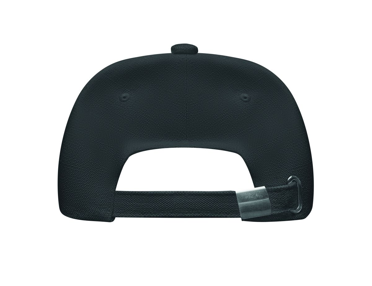 Pětipanelová baseballová čepice ze 100% konopné látky, gramáž 370 g/m2. Na zapínacím pásku je mosazná spona. Rozměry: 21 × 16 × 11 cm.