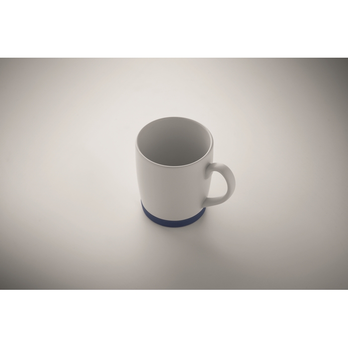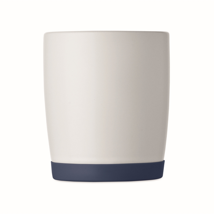 Keramický hrnek s bílým matným povrchem a silikonovým podstavcem pro lepší stabilitu. Objem 300 ml. Jednotlivě baleno v bílé kartonové krabičce. Rozměry: O8.2 x 9.4 cm