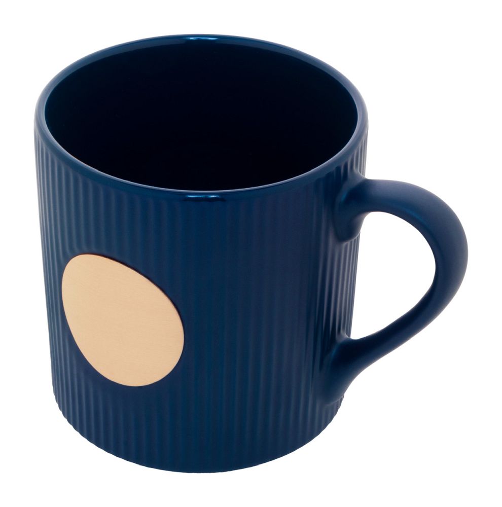 Keramický hrnek s mosaznou destičkou, tmavě modrá