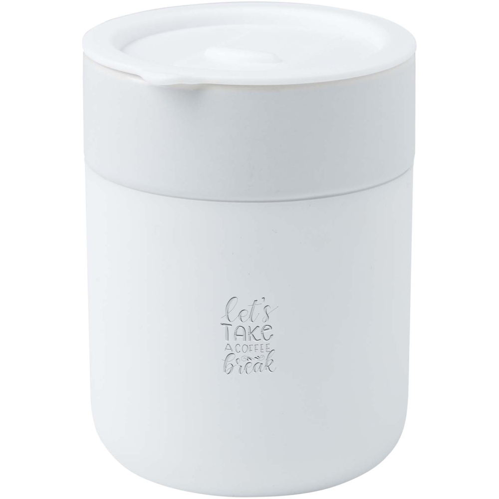 Keramický kelímek se silikonovým obalem a plastovým víčkem 330ml, bílá