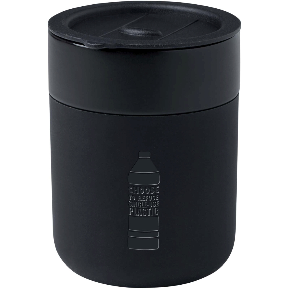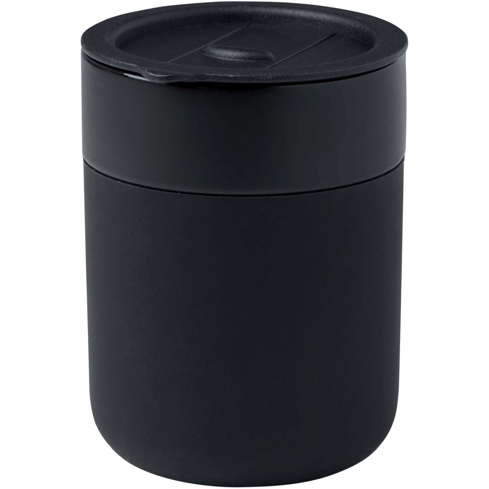 Jednostěnný keramický hrnek má jednoduchý a praktický design pro každodenní použití a je vybaven silikonovým obalem pro pohodlné uchopení. Víčko bránící rozlití. Objemová kapacita: 330 ml. Rozměry: 8,7 x 10,5 x 8,2 x O 8 cm