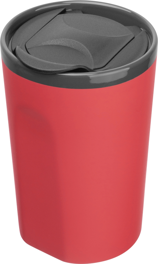 Pogumovaný cestovní keramický pohár, 400 ml, s posuvným víčkom. Rozměry: o 8,9 x 13,5 cm