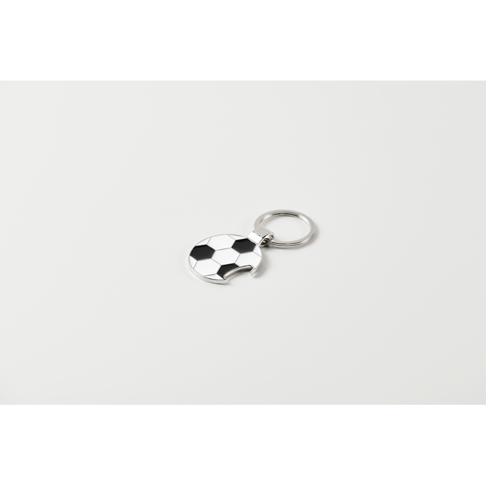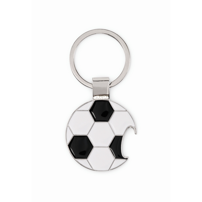 Klíčenka ze slitiny zinku s otvírákem na lahve ve tvaru fotbalového míče. Rozměry: DIA3.7 x 0.2 cm