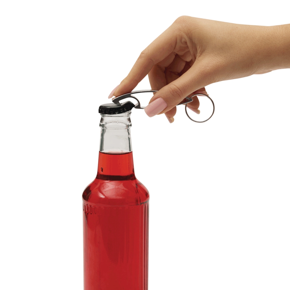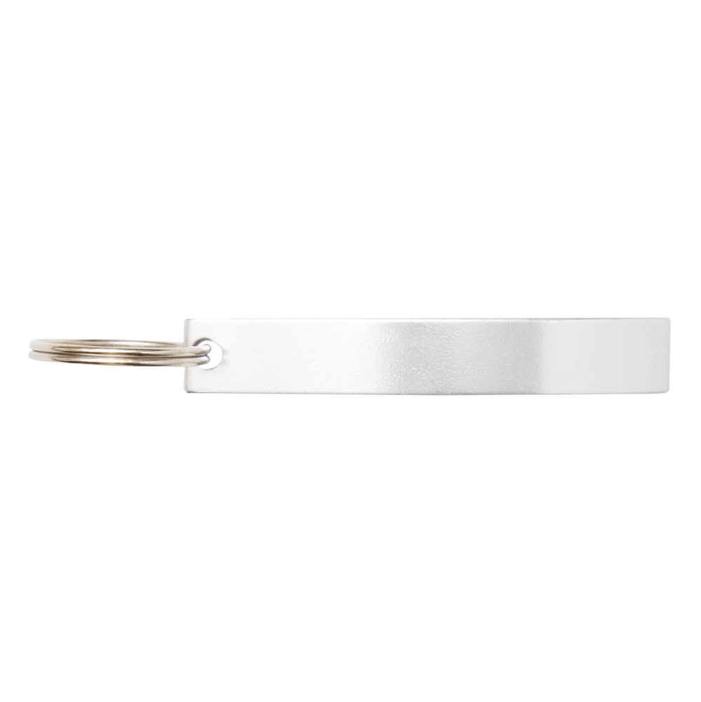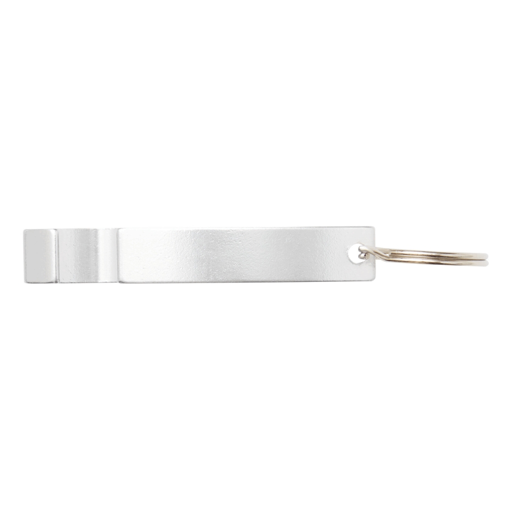 Přívěsek na klíče s integrovaným otvírákem na lahve a kroužkem na klíče. Rozměry: 7 x 1 x 1,5 cm