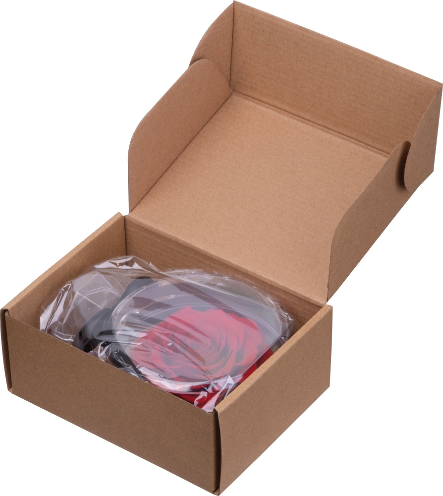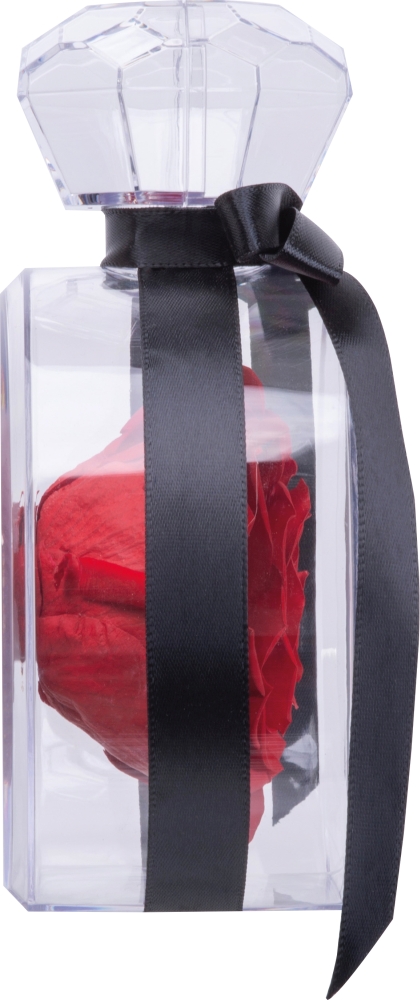 Skutečná konzervovaná růže (věčná růže) v elegantní akrylové krabičce v podobě krystalu, převázaná stuhou. Růže si zachovává svoji prřirozenou krásu několik let – stylový a dlouhotrvající dárek. Rozměry: 16,2 x 11,7 x 6,5 cm