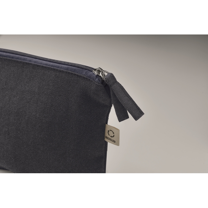 Taštička na kosmetiku a doplňky z recyklované látky (70 % recyklovaná bavlna a 30 % polyester RPET), na zip. 320 g/m2. Tento produkt se po tisku může srazit. Rozměry: 21.5 x 5 x 14.5 cm