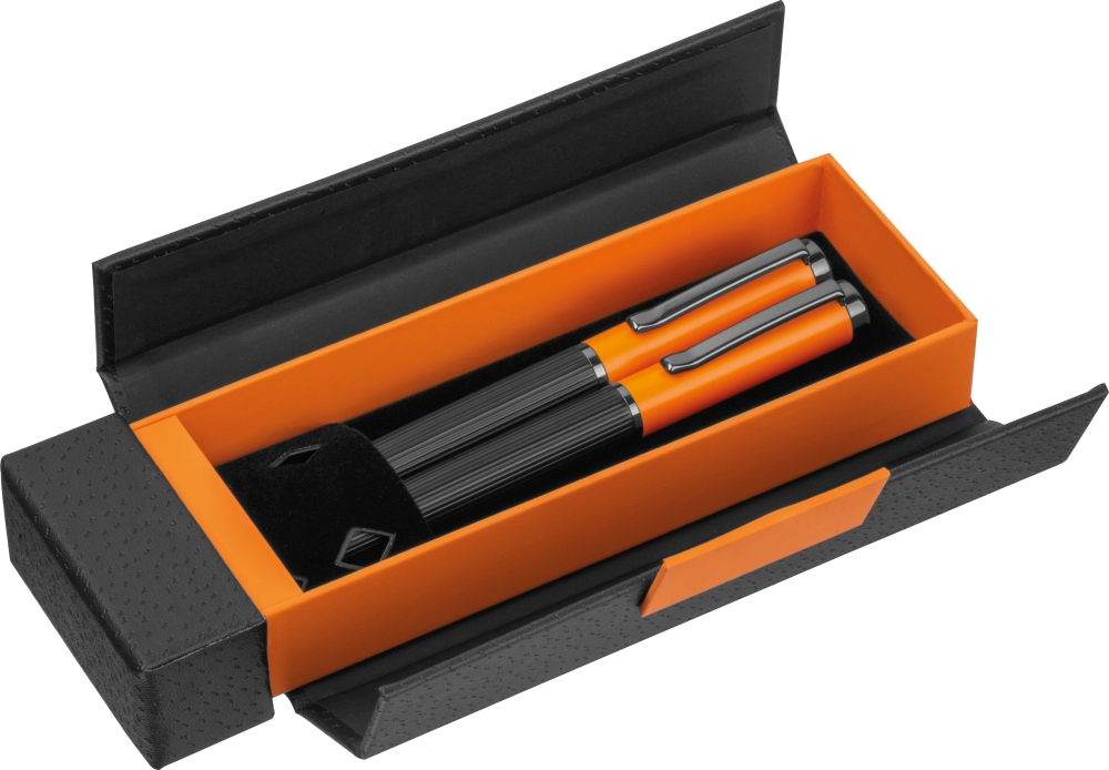 Kovová psací sada propisky a rolleru, oranžová
