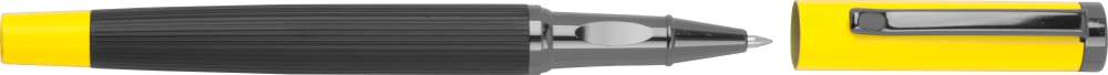 Kovová psací sada s modrou náplní, skládá se z kuličkového pera a rolleru v barevně skladěném zaklapávacím pouzdře. Rozměry: 17,8 x 5,9 x 2,8 cm