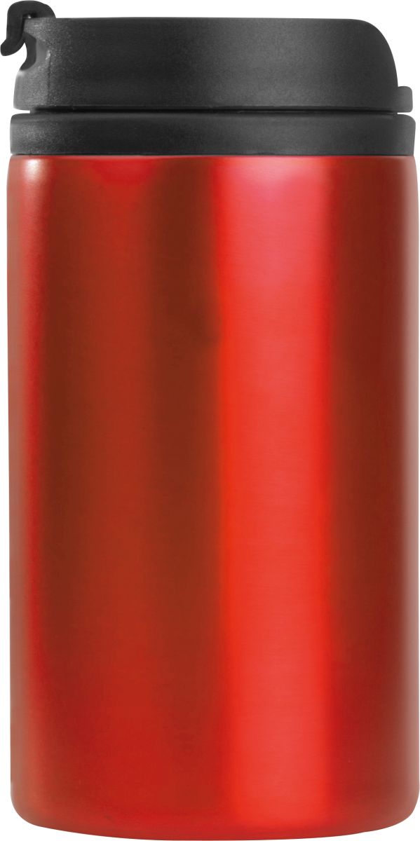 Kovový cestovní termohrnek s víčkem, uvnitř plastový, objem 250ml, červený