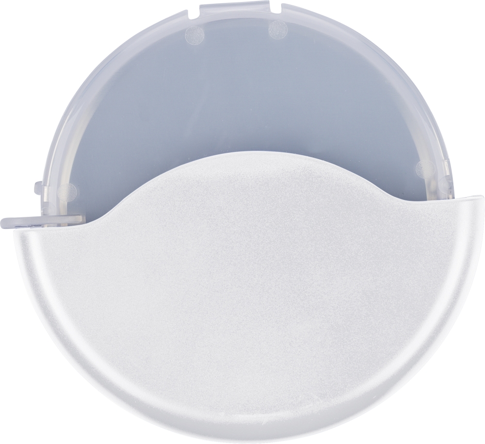 Kráječ na pizzu z ABS a PP s čepelí z nerezové oceli 430. Vybaven odnímatelnou kazetou, která se otevírá zacvaknutím pro snadné čištění a přístup k čepeli. Baleno v recyklovaném polyetylenovém sáčku. Rozměry: 1,6 cm x 9,5 cm