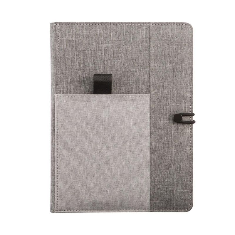 Obal na blok A5 z polyesteru, s prostorem na uložení telefonu, pera, malých poznámek a dalšího příslušenství vevnitř i venku. Součástí je také blok, který má 32 béžových linkovaných listů z papíru o gramáži 70g/m2. Když blok popíšete snadno jej vyměníte za nový. Registrovaný design®. Rozměry: 2,5 × 16 × 22 cm.