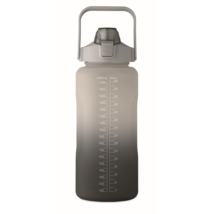 Láhev na vodu, RPET 2000 ml, šedá/černá