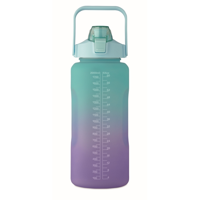Láhev na vodu, RPET 2000 ml, tyrkysová/fialová