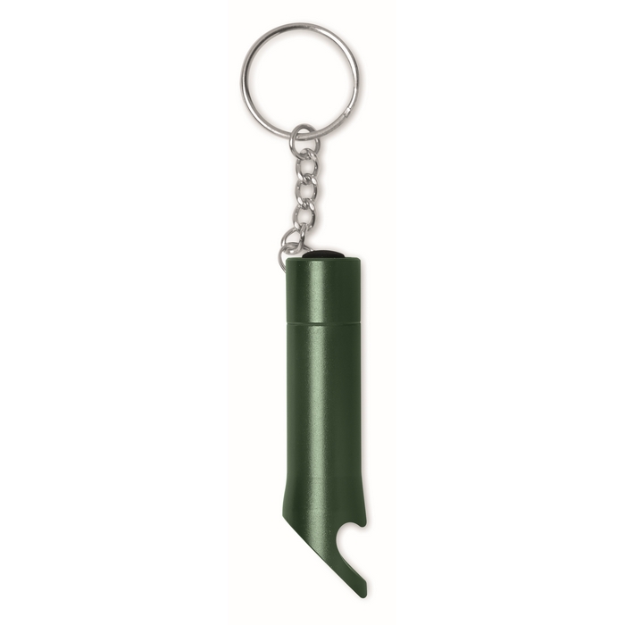 LED svítilna s otvírákem a kroužkem na klíče, tmavě zelená