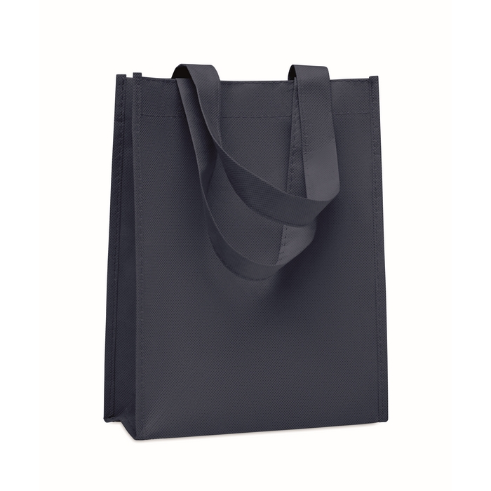 Malá dárková taška z netkané 80g RPET textilie s krátkými uchy a klíny.Rozměry: 20 x 8 x 25cm