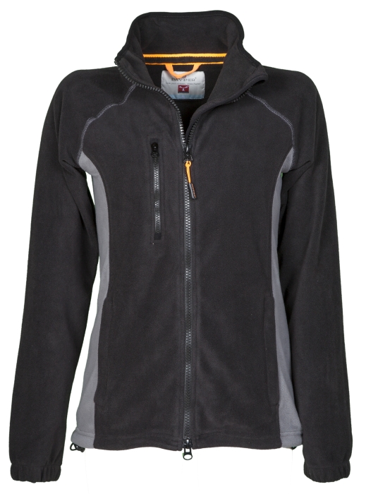 Dámská fleecová mikina s černým zipem v plné délce, raglánovými rukávy, dvěma kapsami se skrytým zapínáním na zip a přední kapsou na zip na hrudi. Materiál: polar fleece 100%m polyester, 280gsm. Doporučená technologie: výšivka.