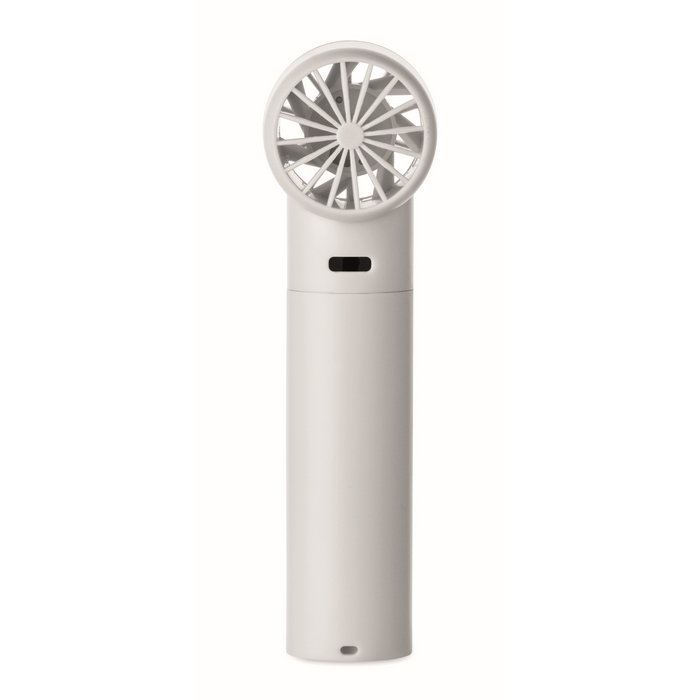 Ruční mini ventilátor z ABS s displejem a 5 nastaveními rychlosti. Obsahuje vyměnitelnou lithiovou baterii s kapacitou 2600 mAh. Rozměry: 13.5 x 4 x 4 cm
