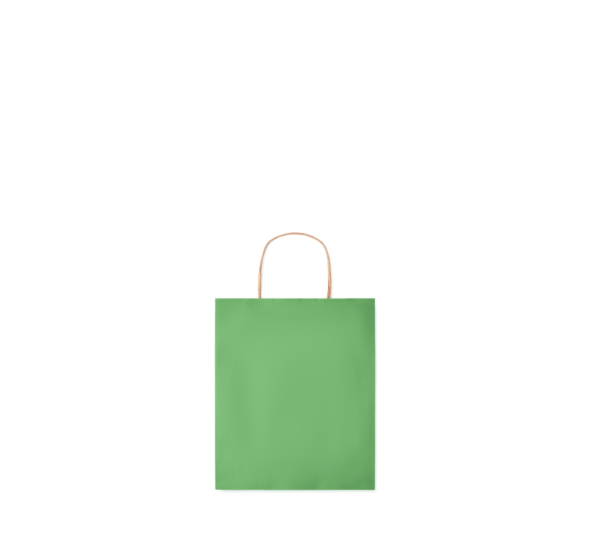 Papírová dárková taška s kroucenými uchy. Papír 90 g/m2. Vyrobeno v Evropě. Rozměry: 18 × 21 × 8 cm.