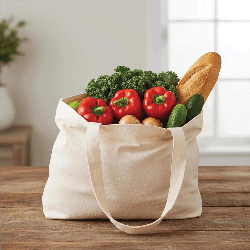 Nákupní taška vyrobená z odolného, ??robustního a odolného bavlněného plátna (cca 350 g/m2), s dlouhými uchy. Rozměry: 52 x 17 x 35 cm