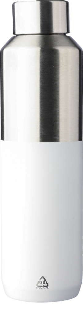 Dvoustěnná vakuově izolovaná láhev z nerezové oceli. Víko z PP s vrchní částí z nerezové oceli. Na přední straně je vyryté logo z recyklovaného materiálu. Jednotlivě baleno v hnědé kartonové krabici. Rozměry: 7 x 24,5 cm
